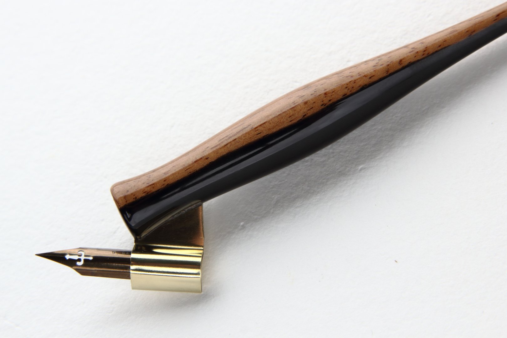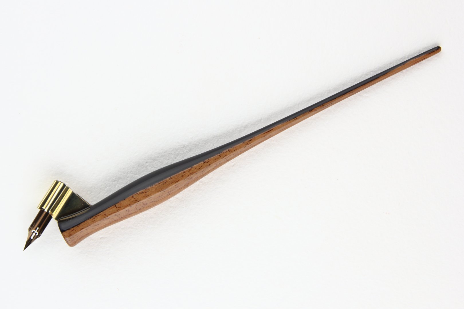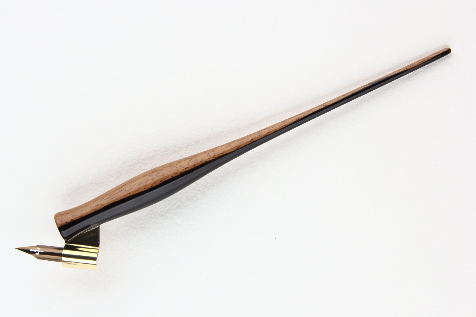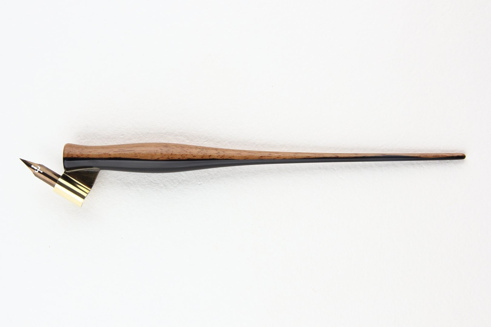 Oblique pen holder made of Gabon Ebony wood. To create it I selected a beautiful piece of wood with a clear distinction between its dark heartwood and light sapwood.