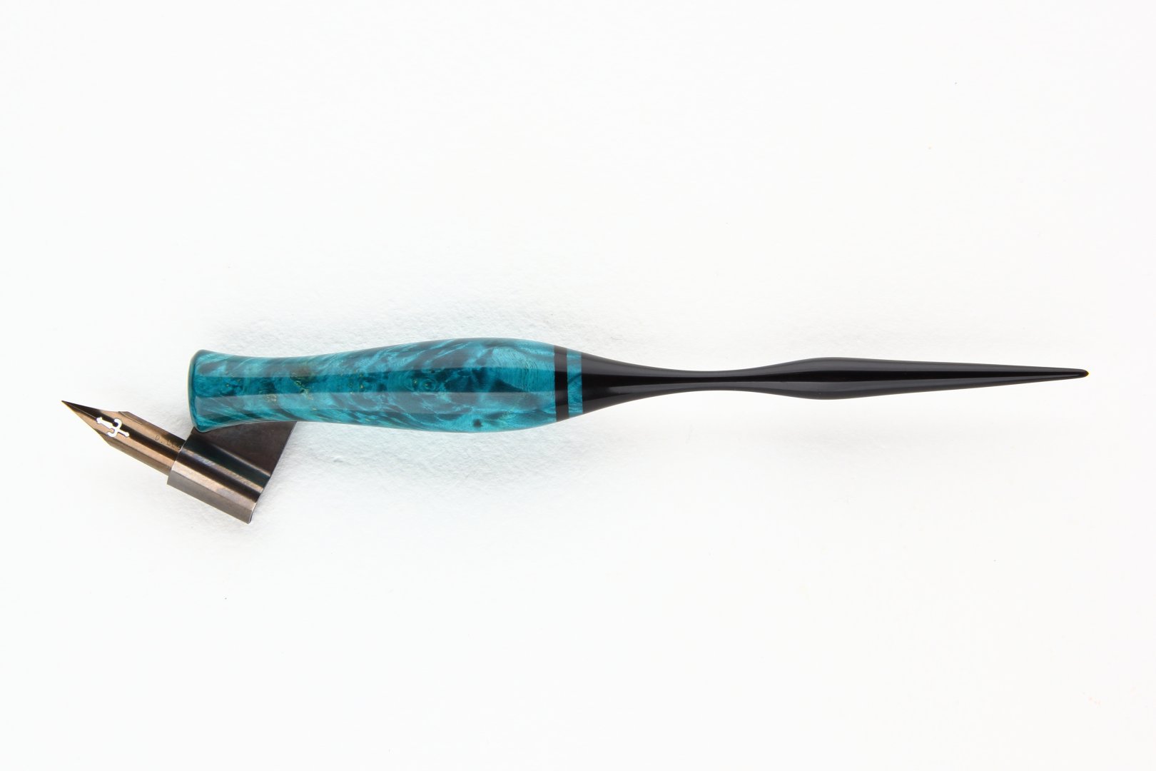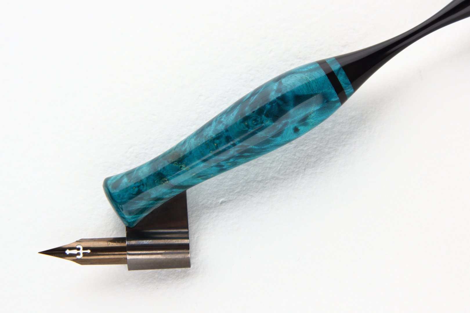 The nib flange is made of brass, oxidized to obtain a deep, dark color.