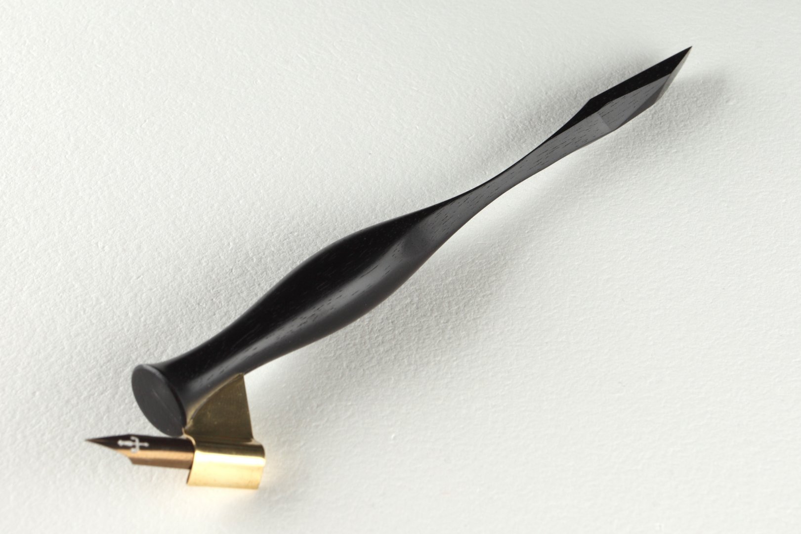 Oblique pen holder with hand carved finial, made of Gabon Ebony.