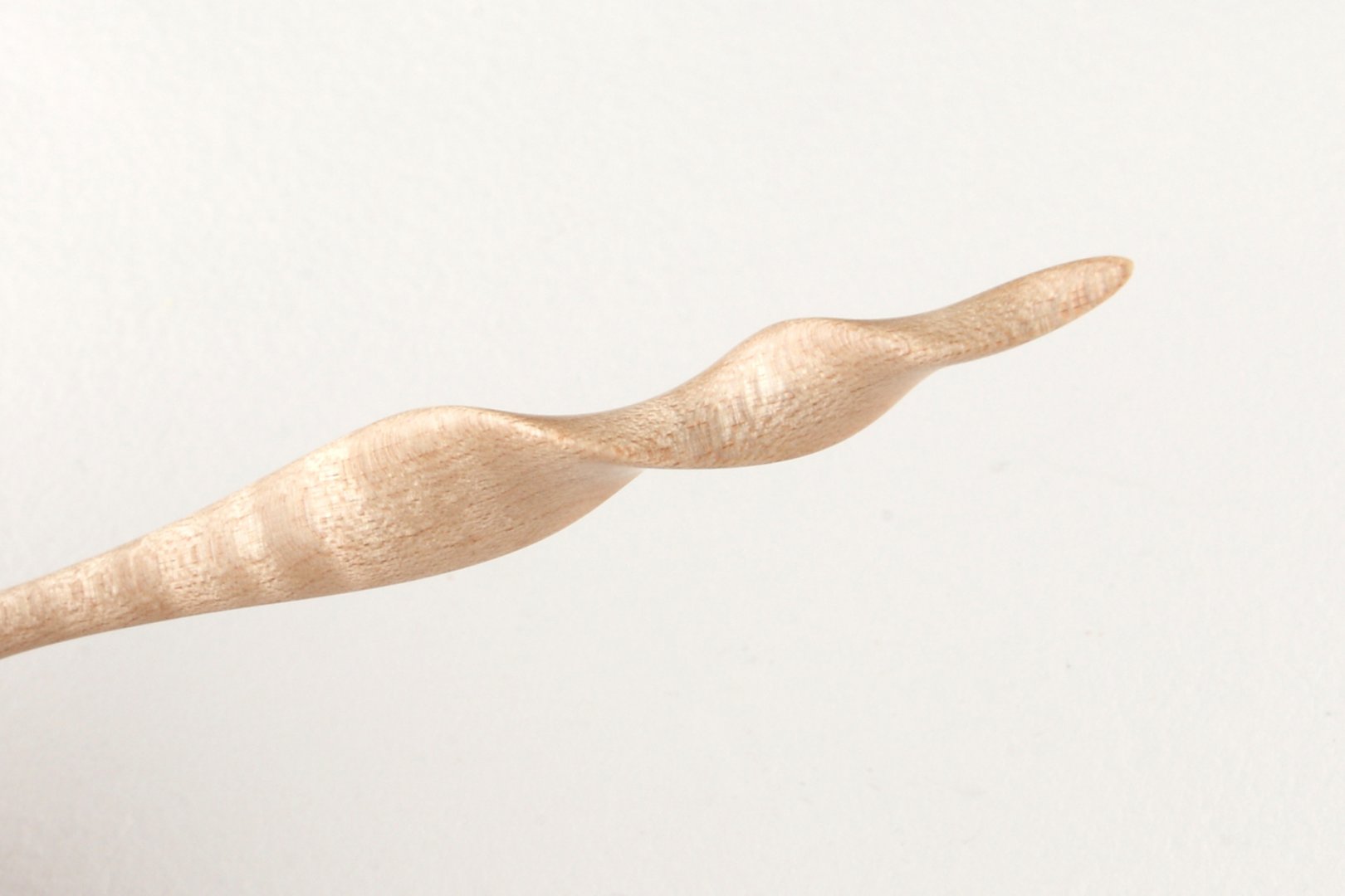 Oblique pen holder with hand carved tail, made of curly Sycamore Maple wood