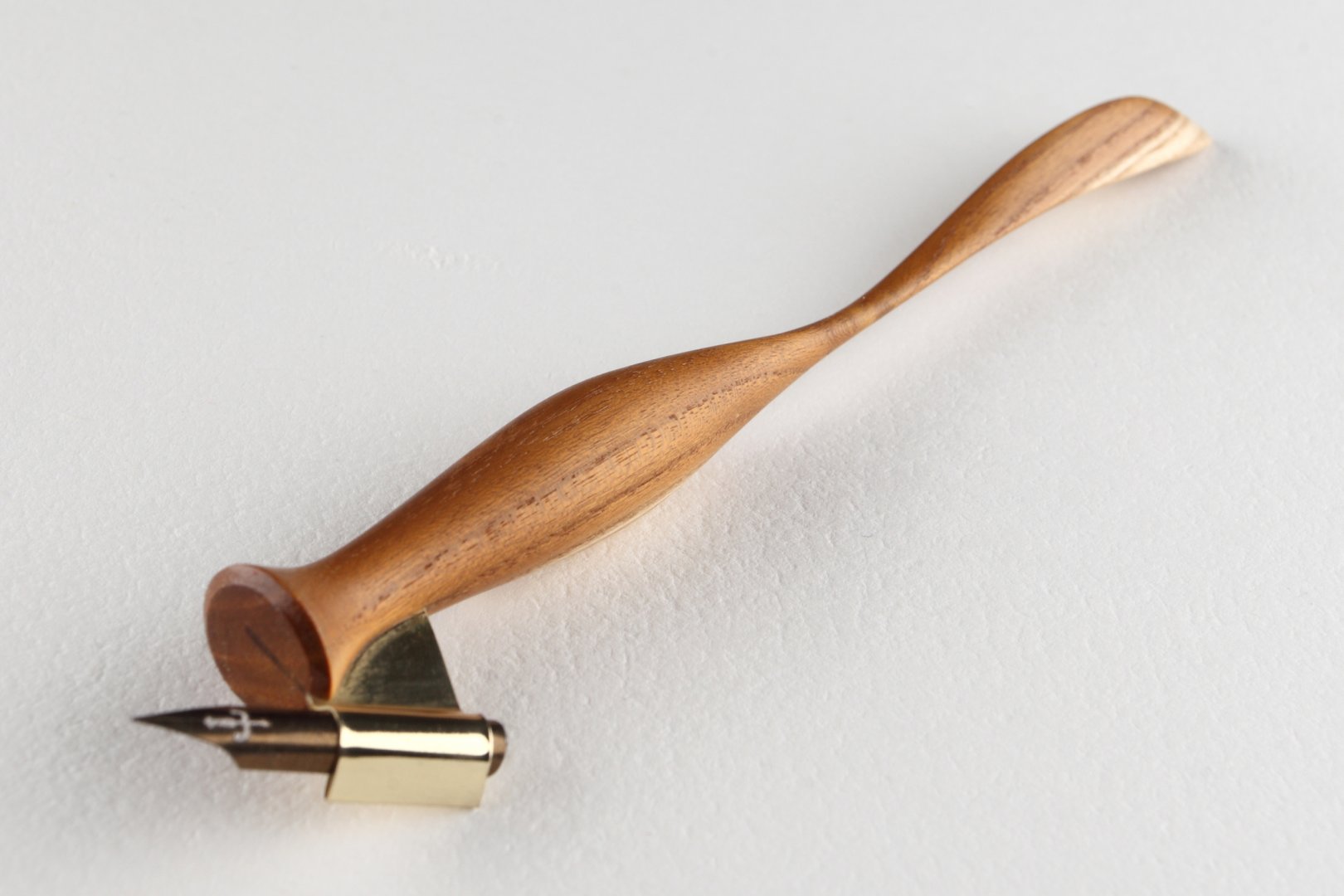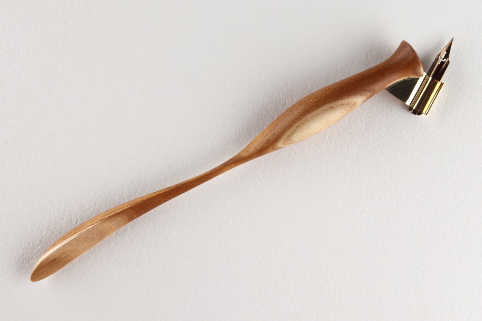 Oblique pen holder with hand carved tail, made of Mulberry wood.