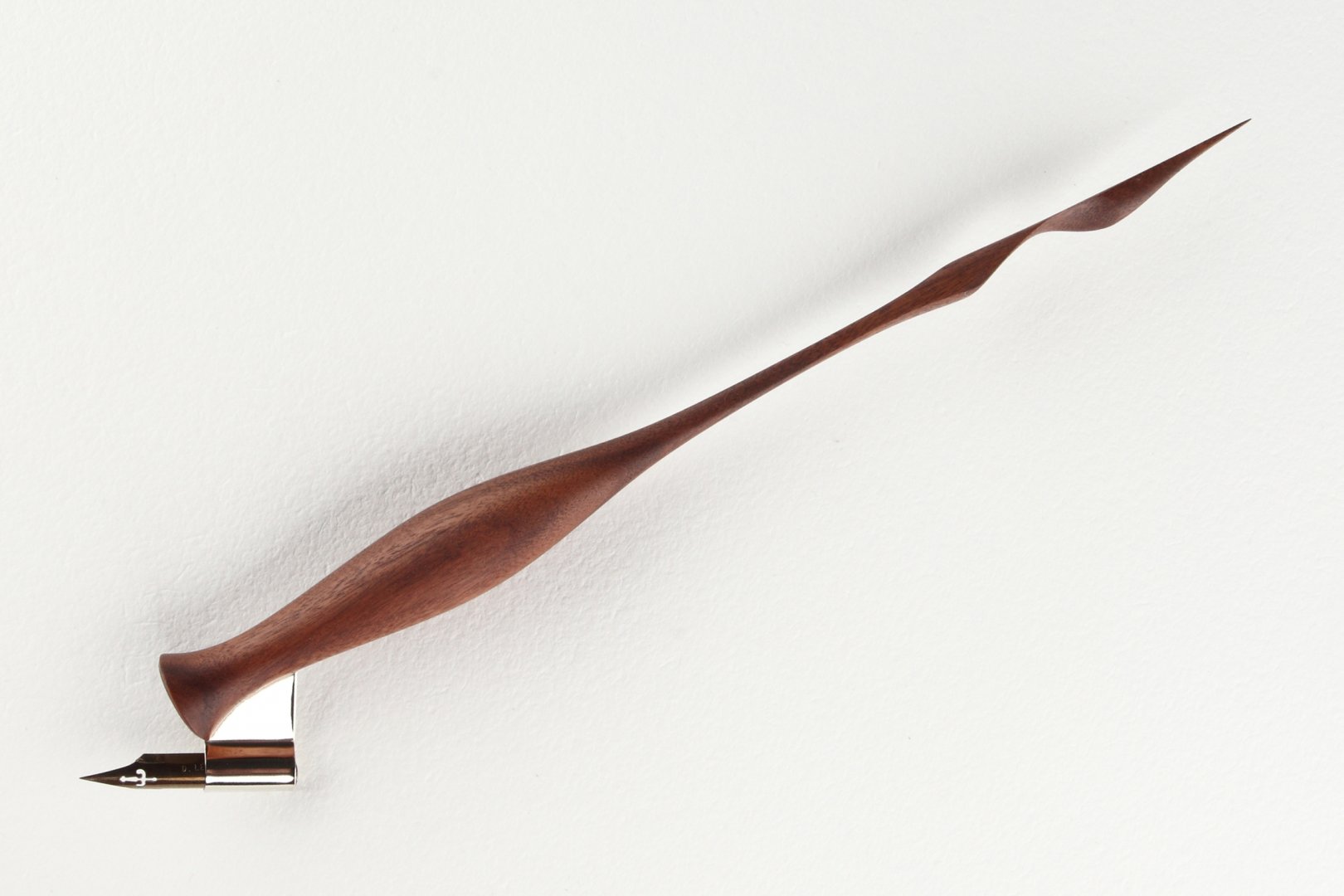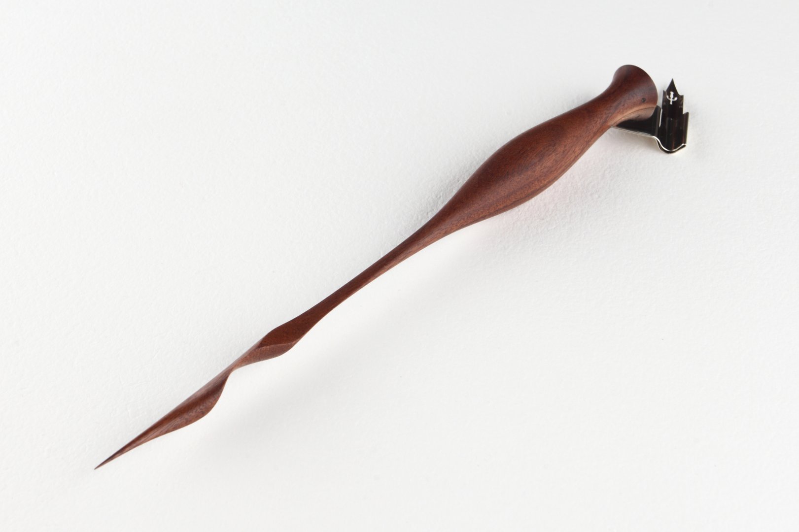 Oblique pen holder with hand carved tail made of Pau Ferro wood.