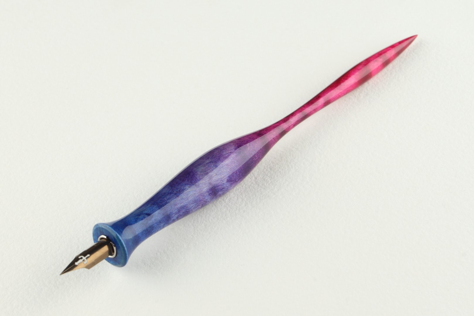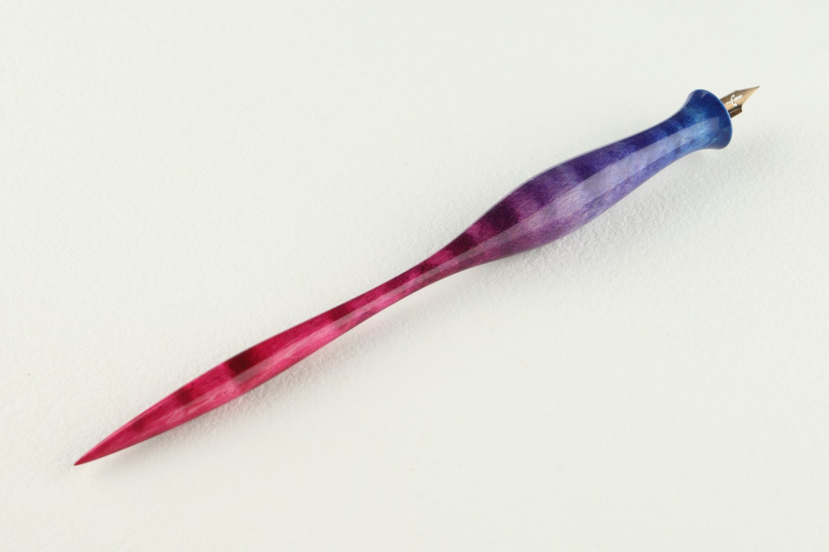 Straight pen holder made of dyed curly Sycamore Maple wood.