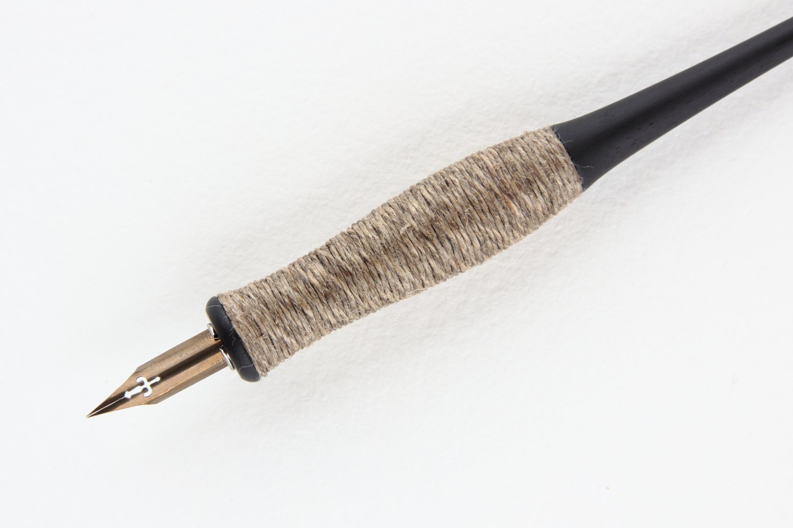 Straight pen holder made of Gabon Ebony with body wrapped with natural linen twine.