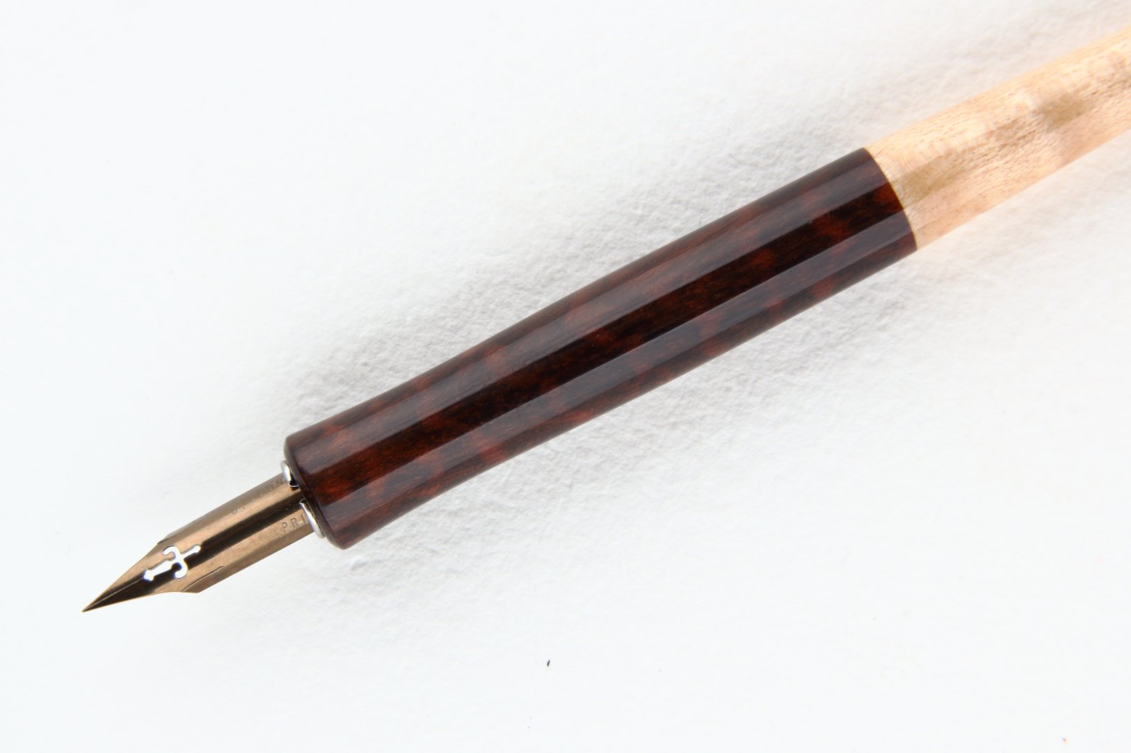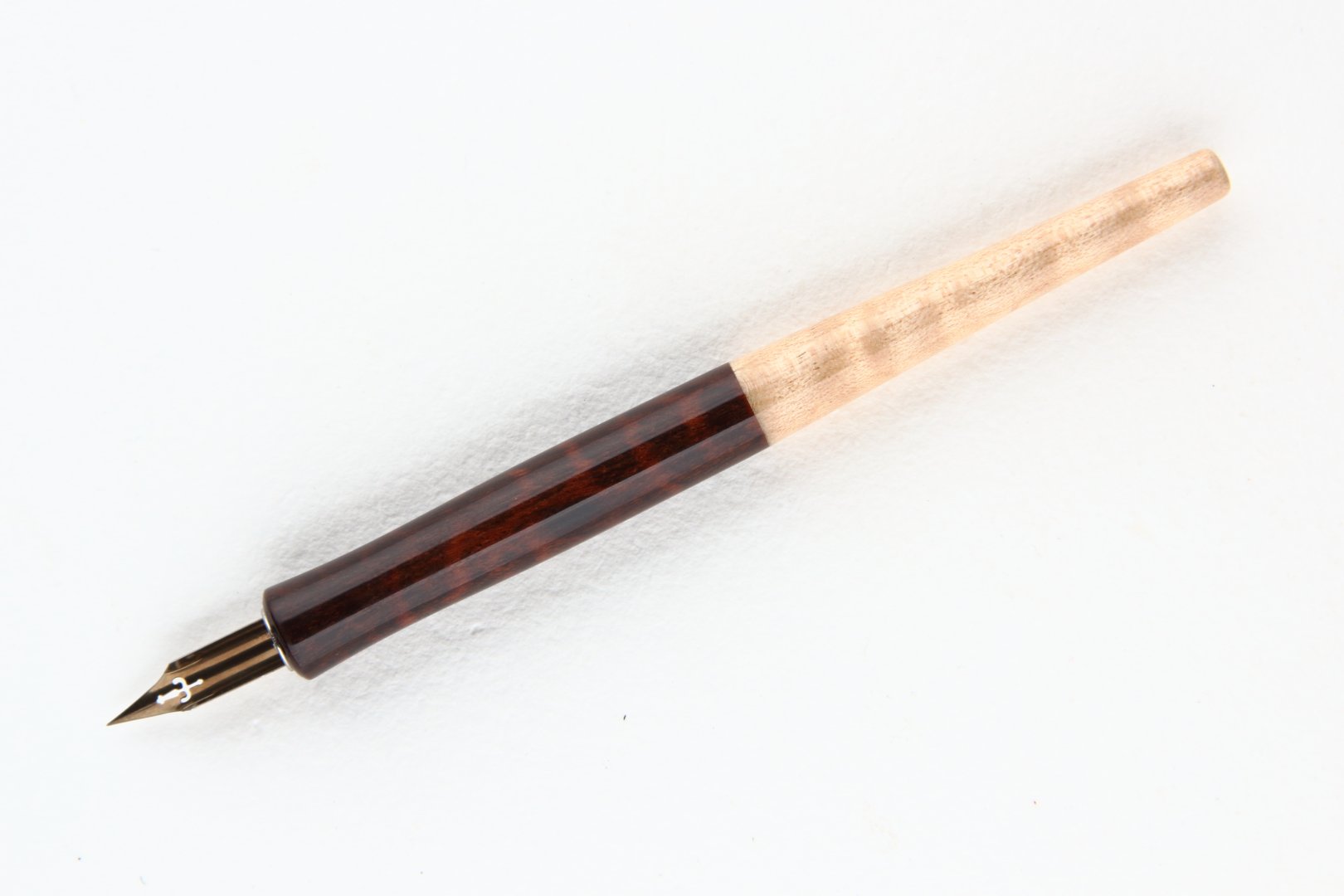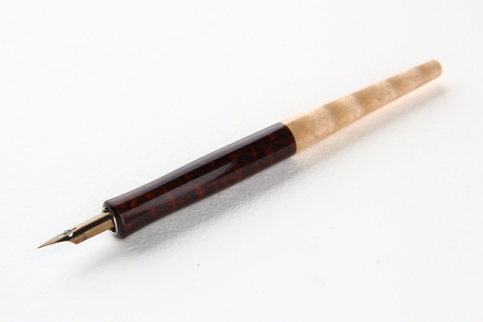 Straight pen holder made of Snakewood and Curly Sycamore Maple wood.