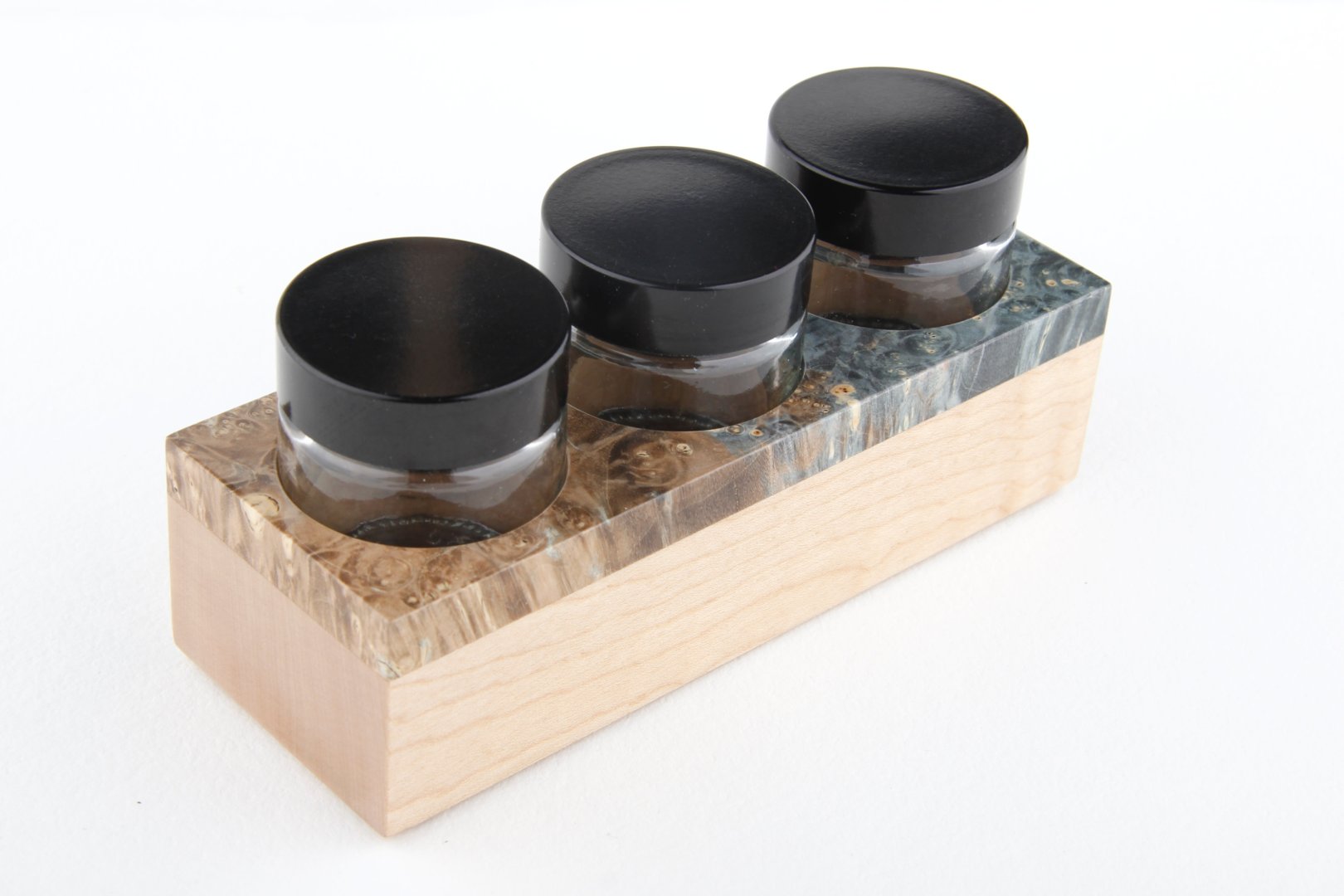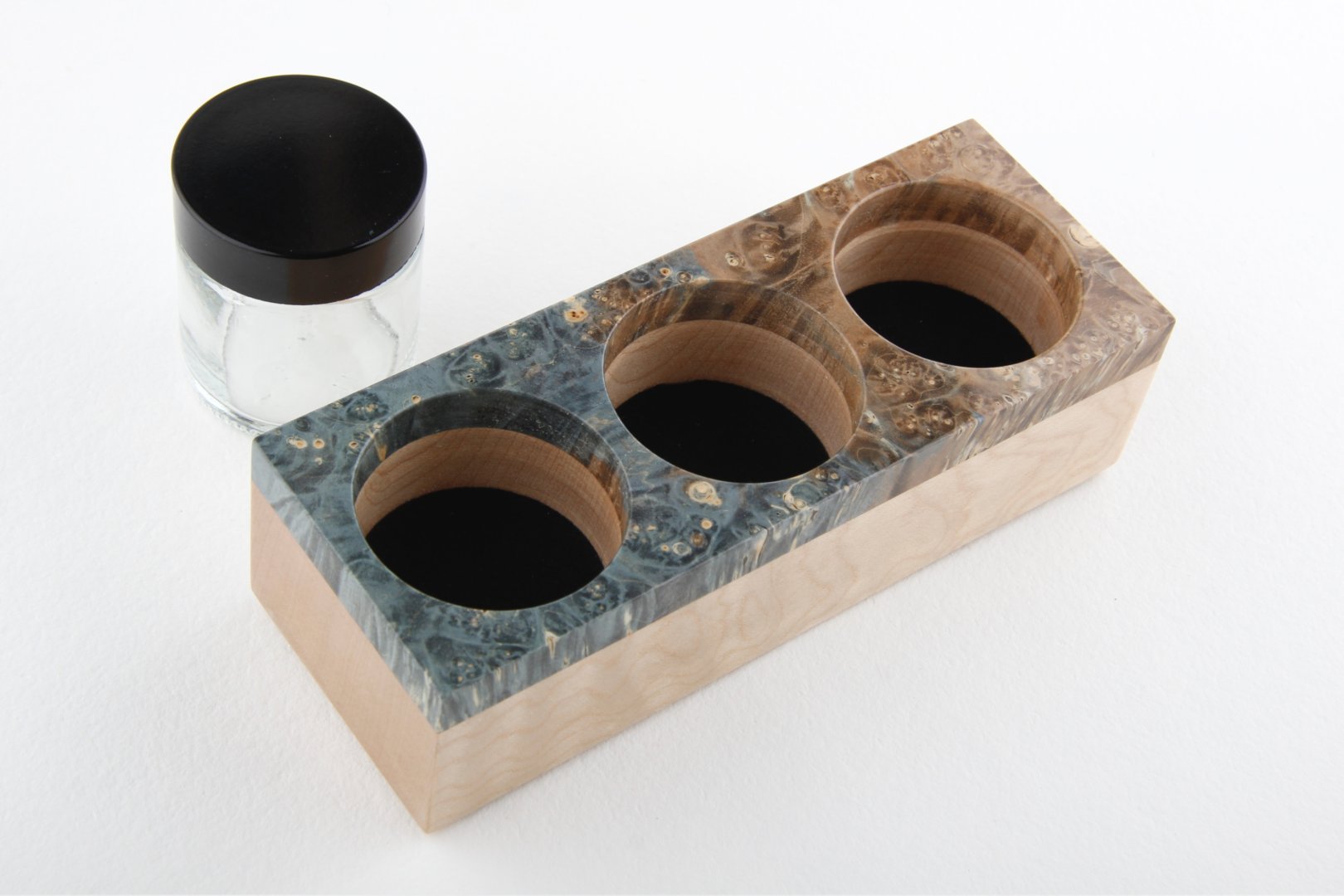 Inkwell made of stabilized Maple Burl and curly Sycamore Maple wood.