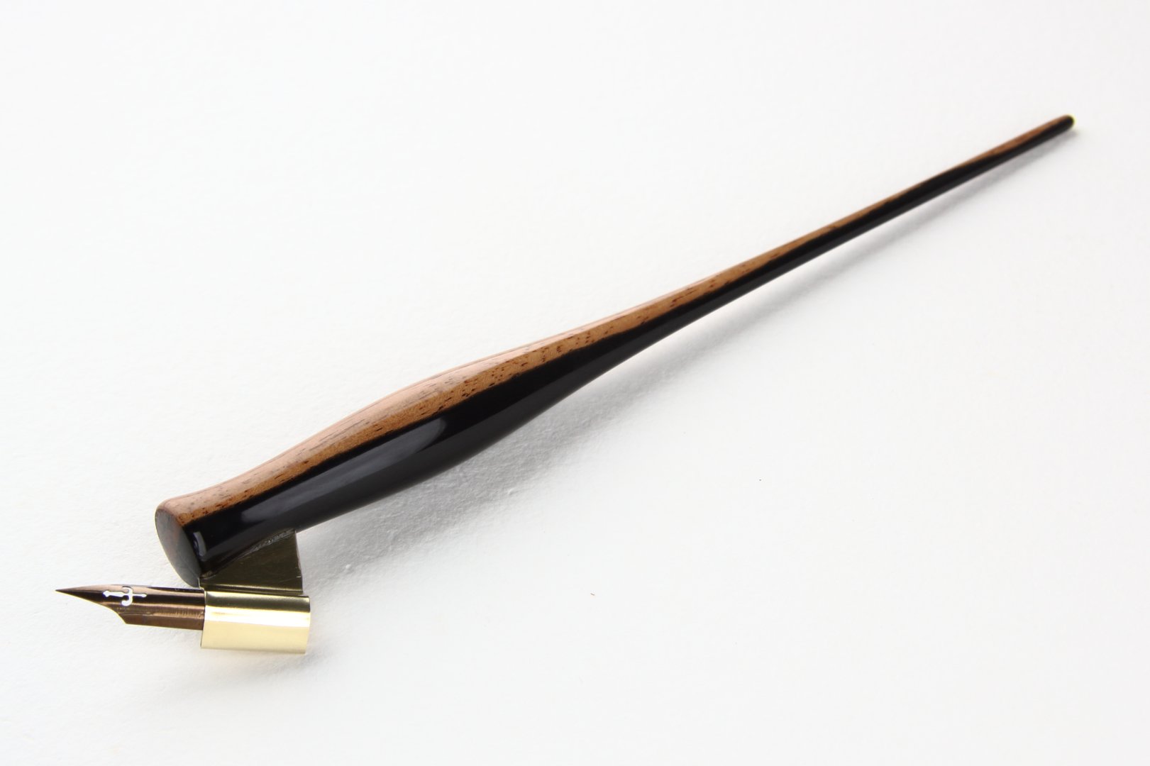 Oblique pen holder made of Gabon Ebony wood. To create it I selected a beautiful piece of wood with a clear distinction between its dark heartwood and light sapwood.