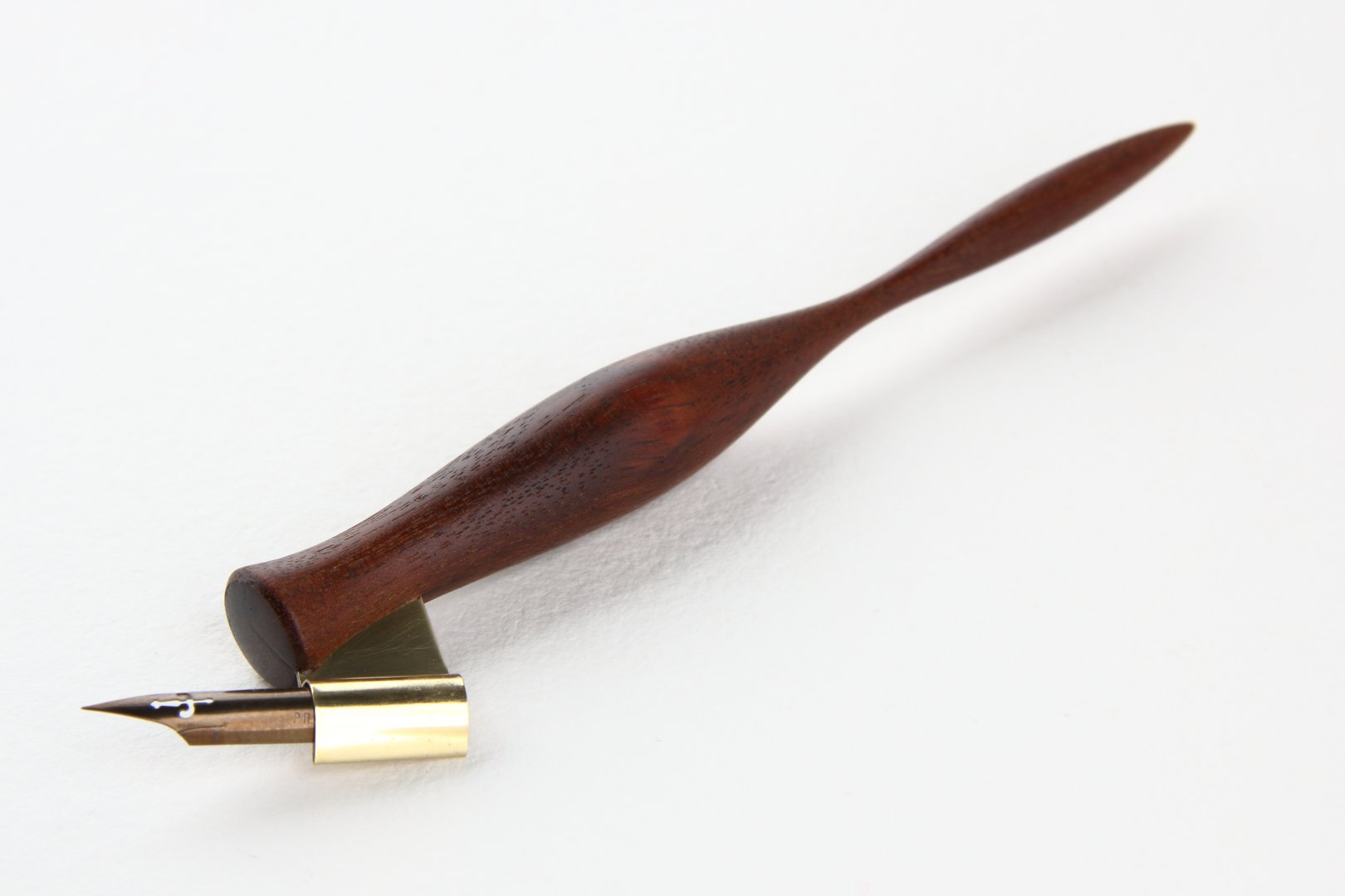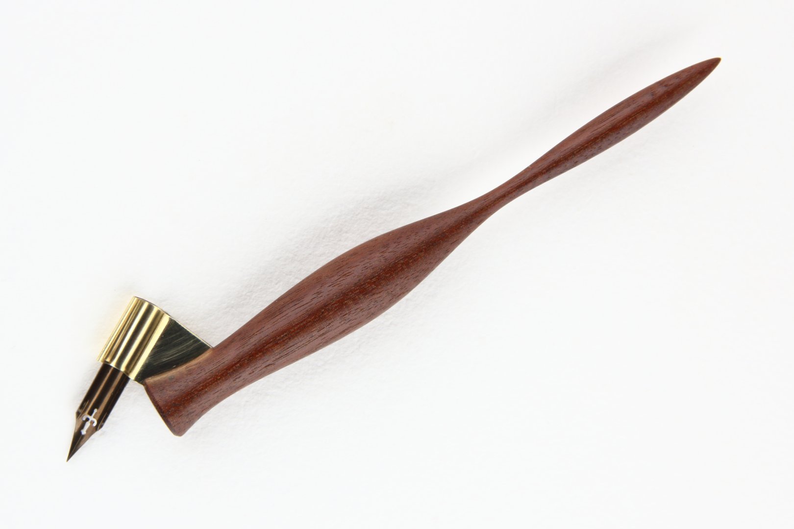 Oblique pen holder made of Ipe. The nib flange is made of brass. Finished with natural tung oil.