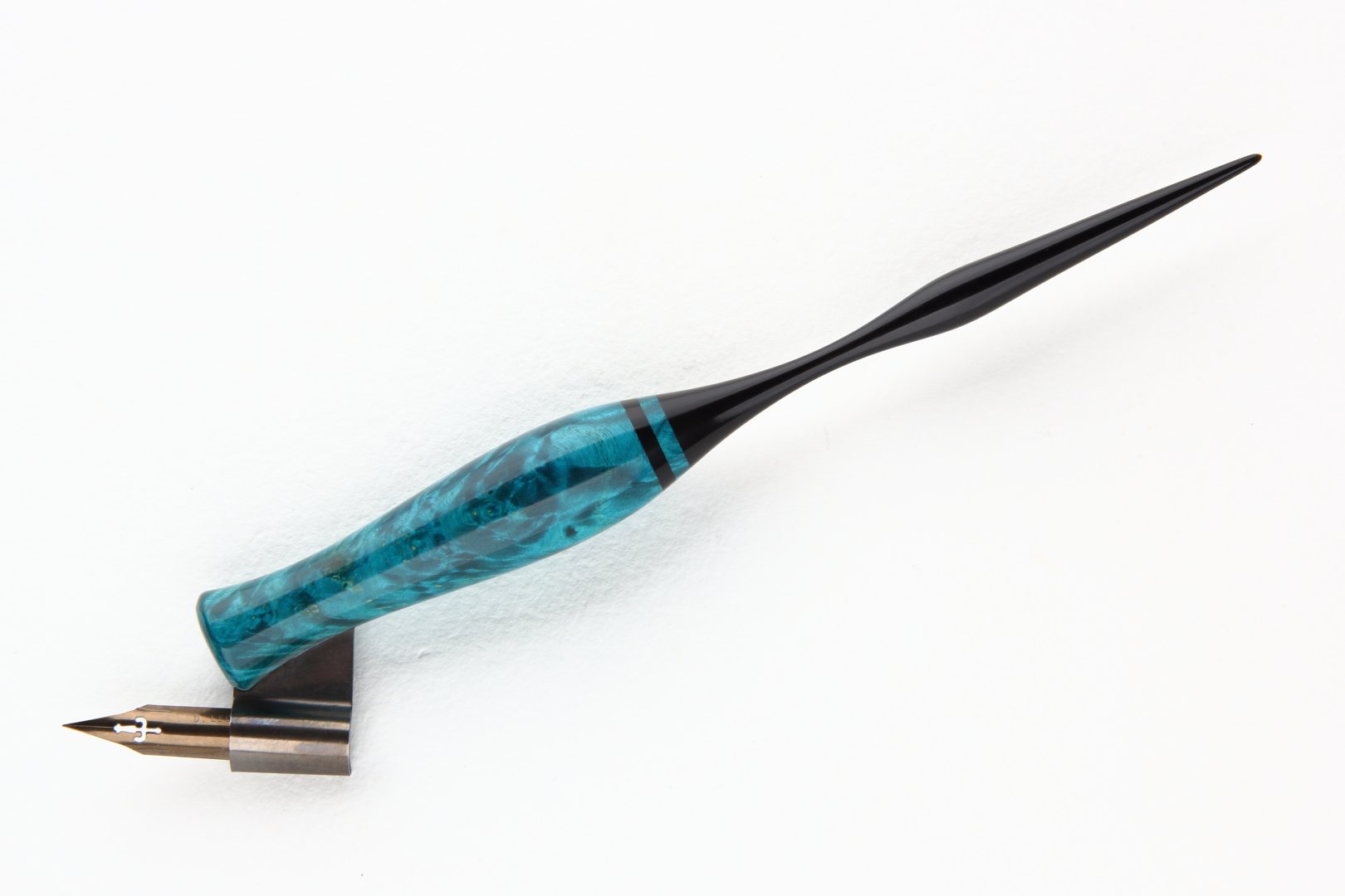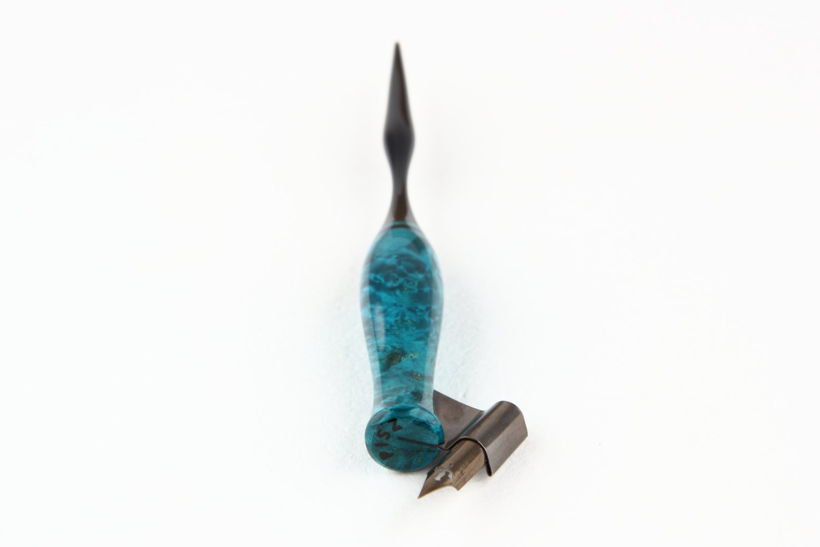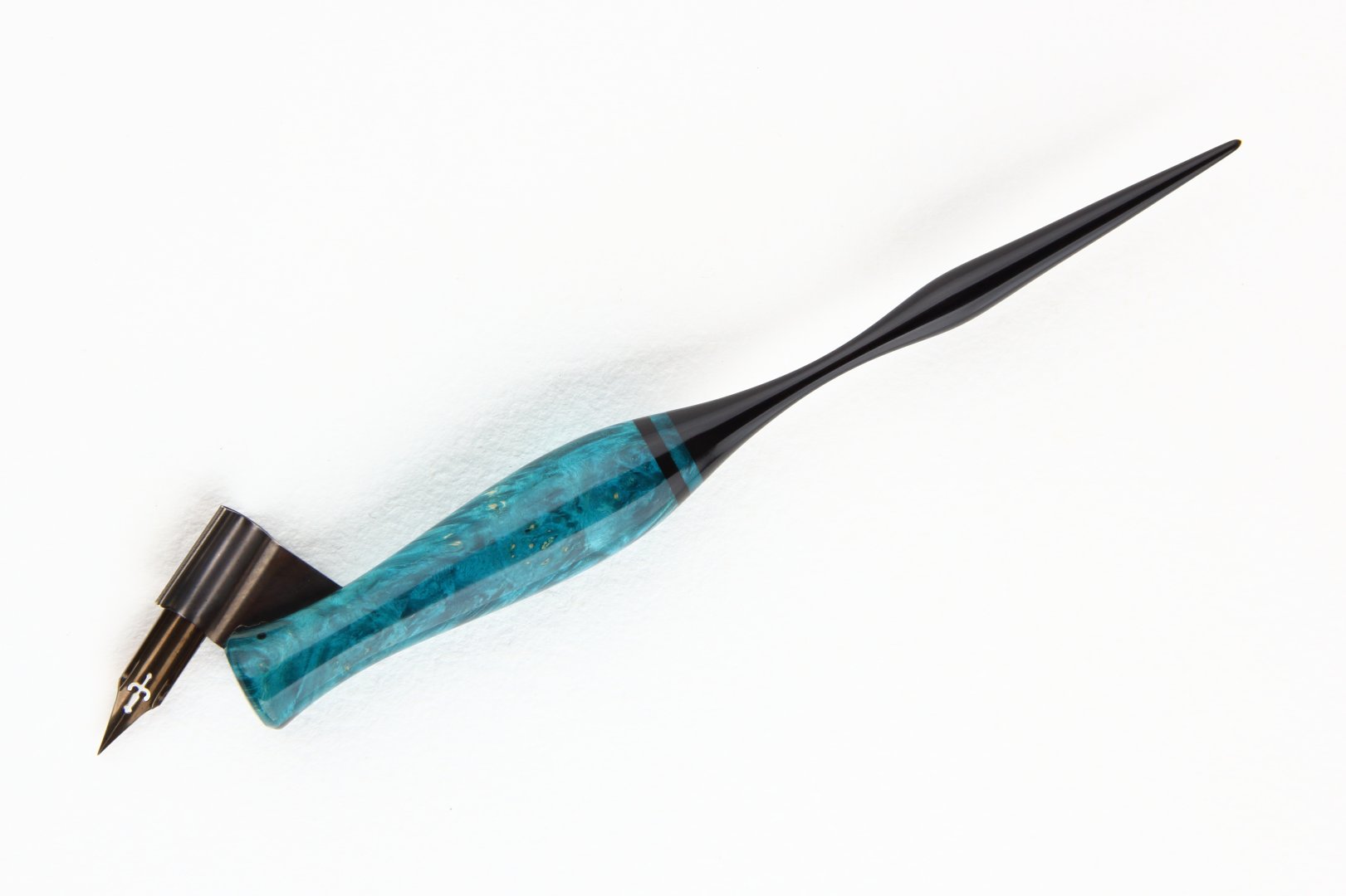 The nib flange is made of brass, oxidized to obtain a deep, dark color.