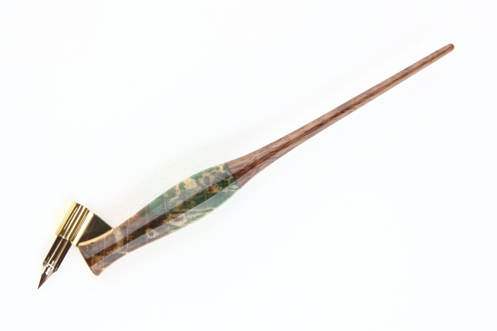 Oblique pen holder made of stabilized Maple Burl and curly American Walnut.