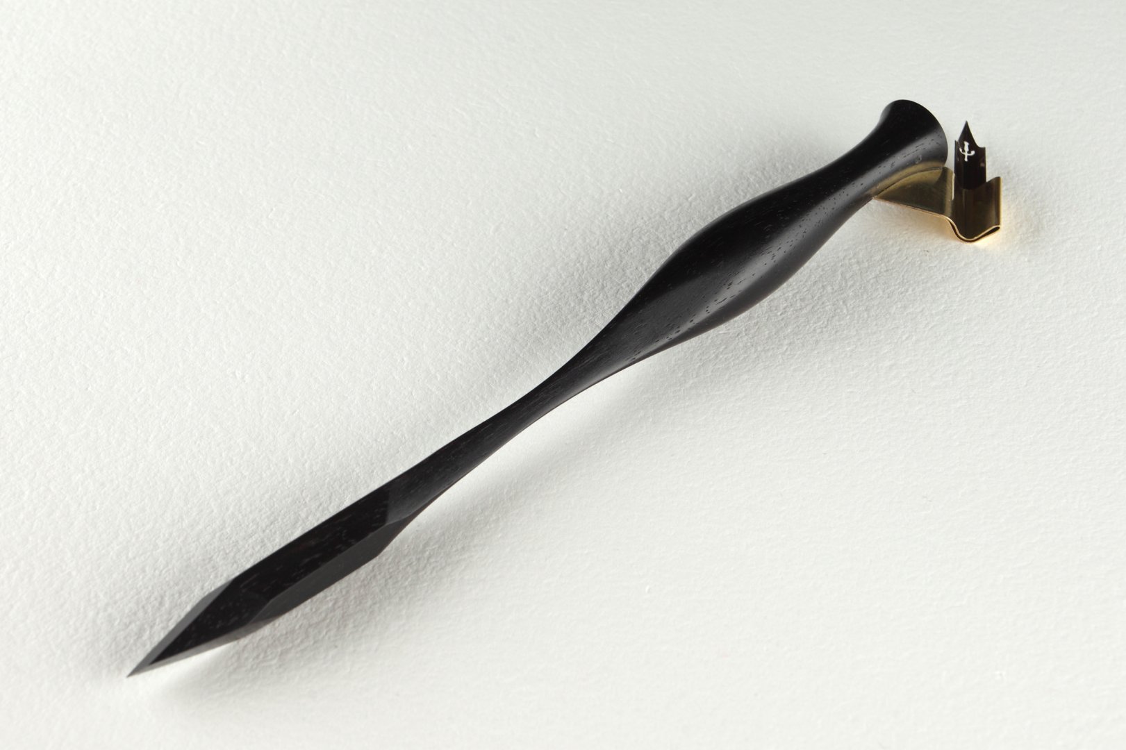 Oblique pen holder with hand carved finial, made of Gabon Ebony.
