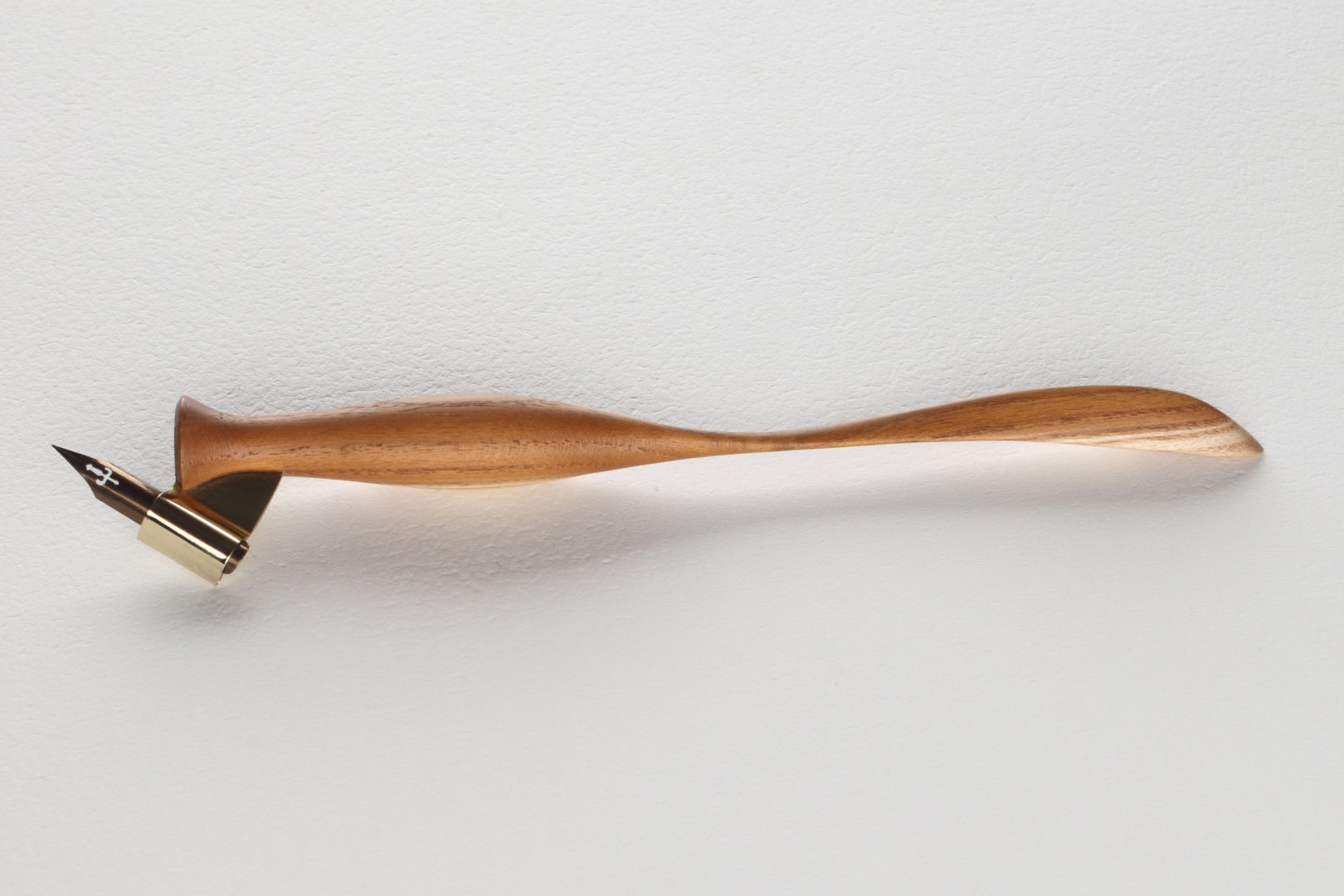 Oblique pen holder with hand carved tail, made of Mulberry wood.