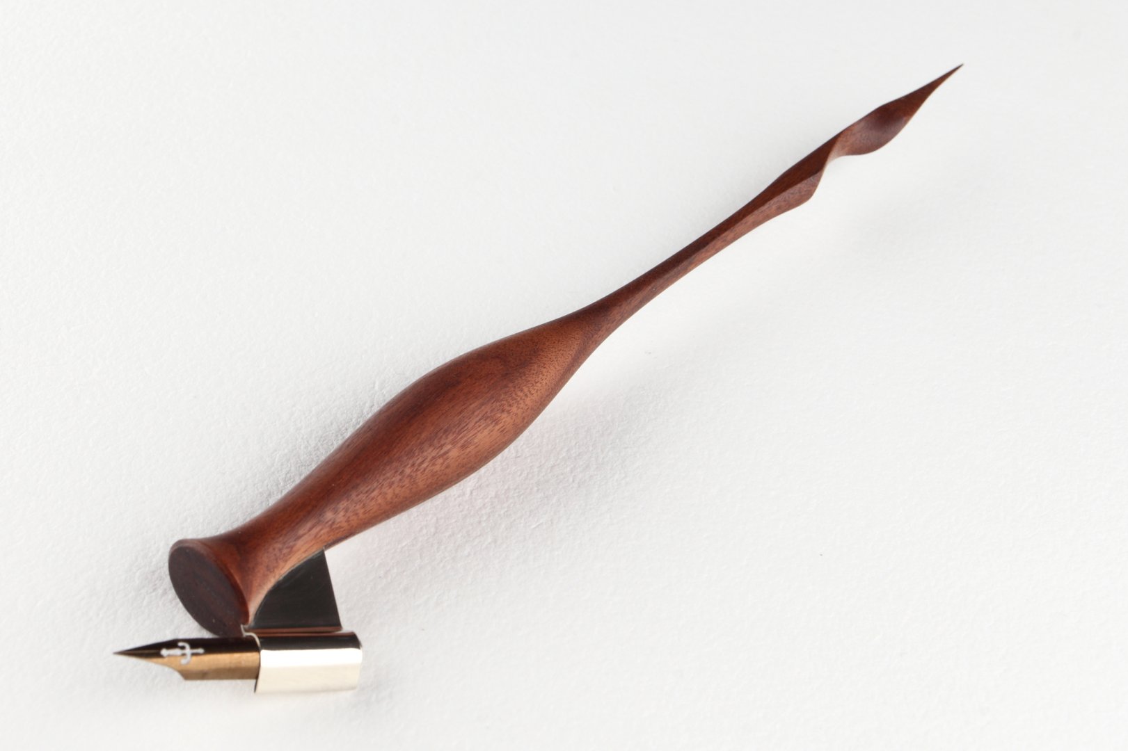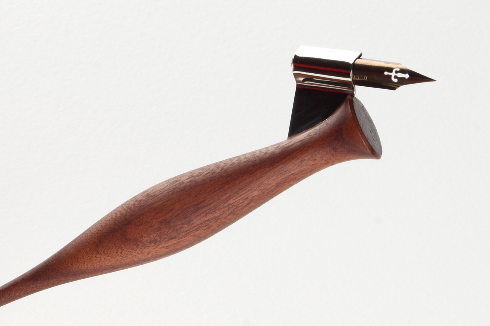 Oblique pen holder with hand carved tail made of Pau Ferro wood.