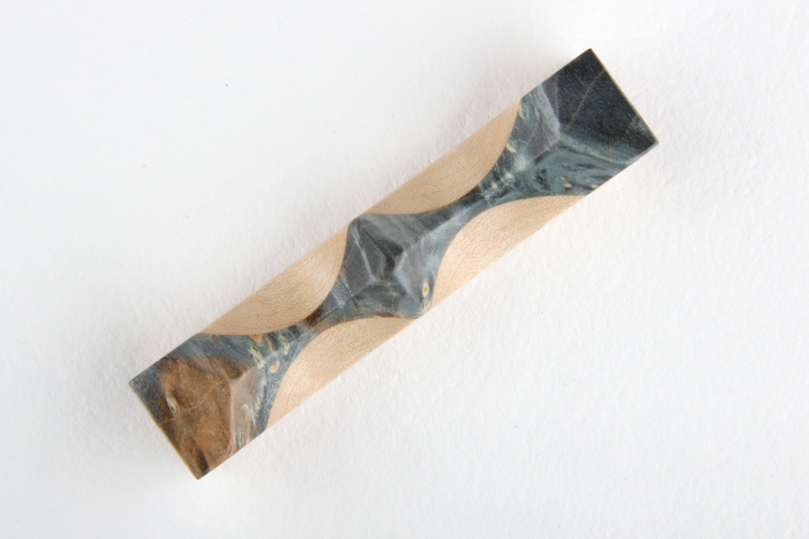 Pen rest made of stabilized Maple Burl and curly Sycamore Maple wood.