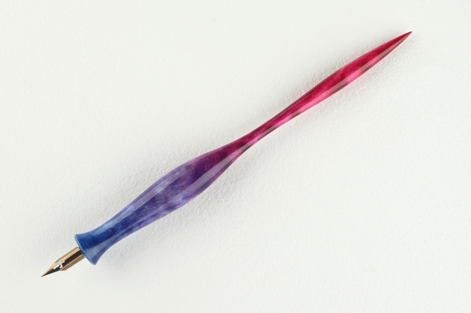 Straight pen holder made of dyed curly Sycamore Maple wood.