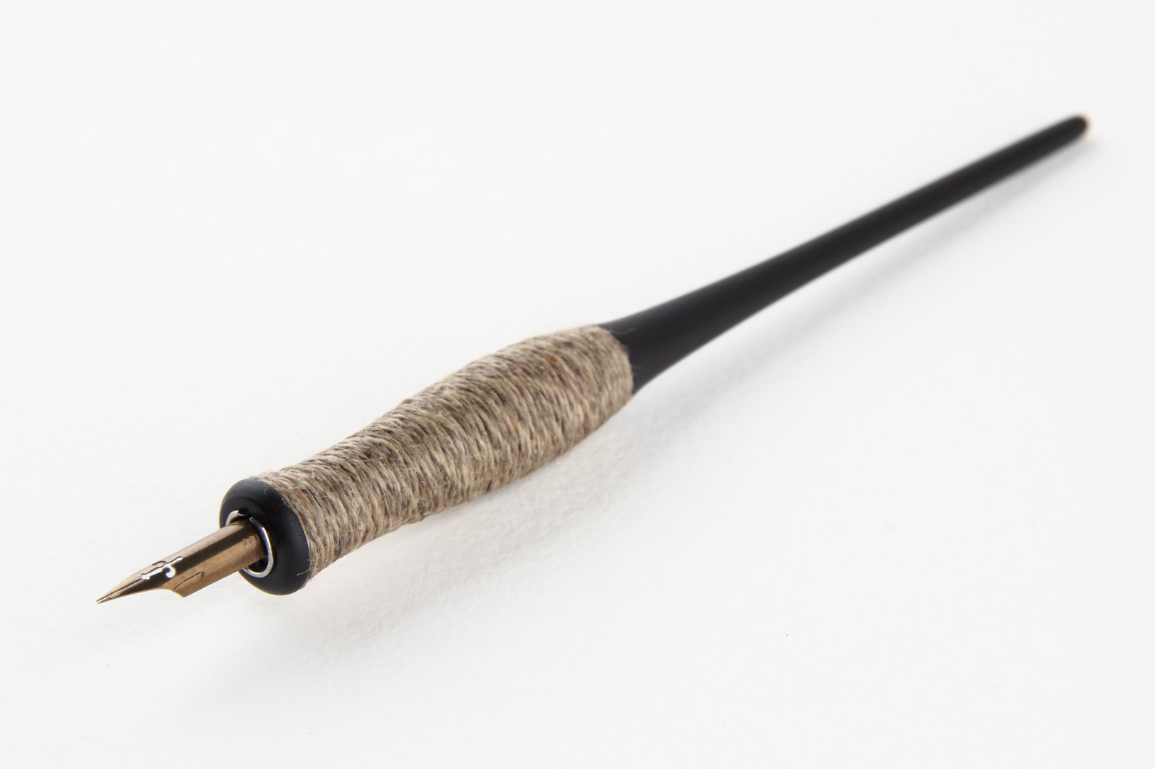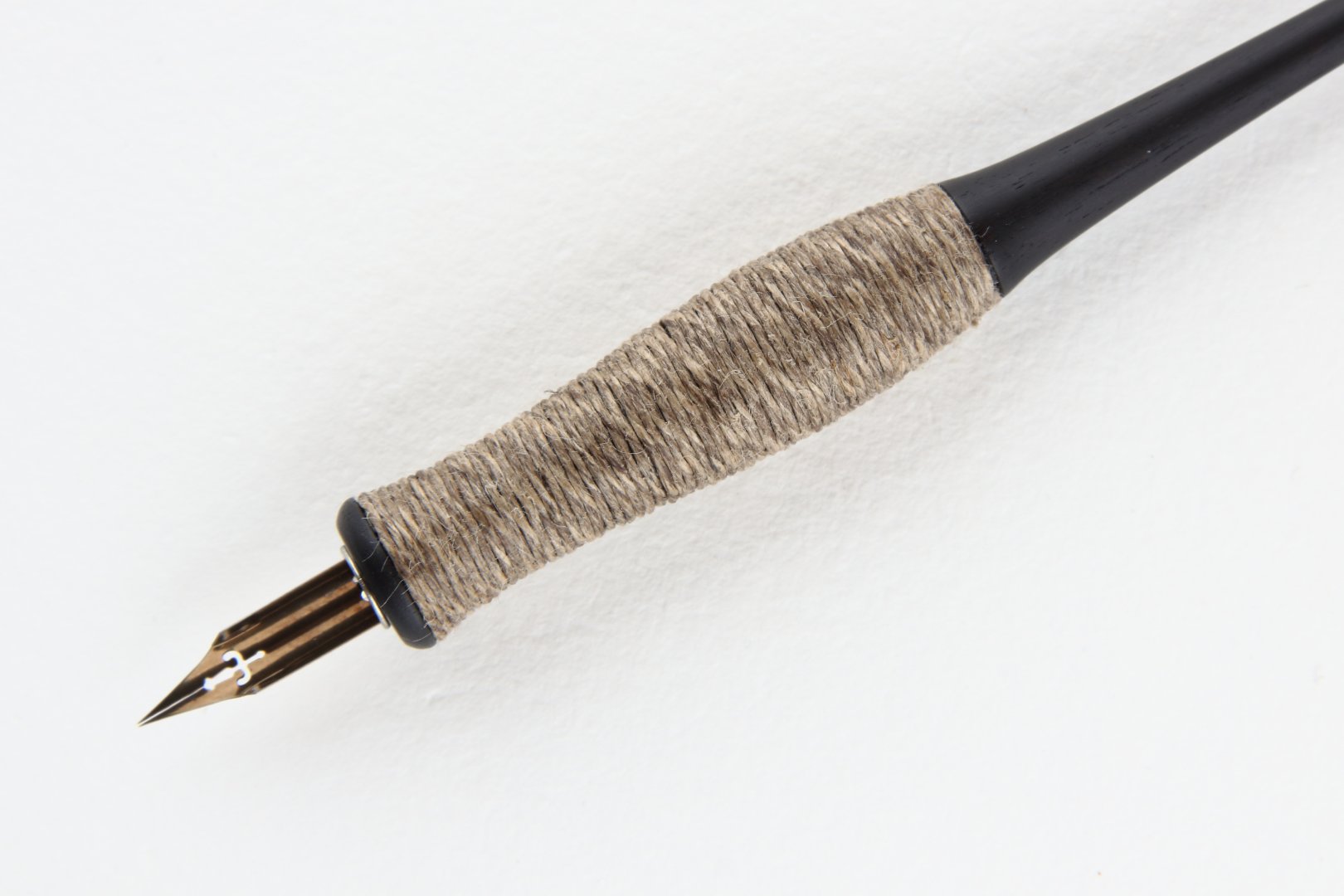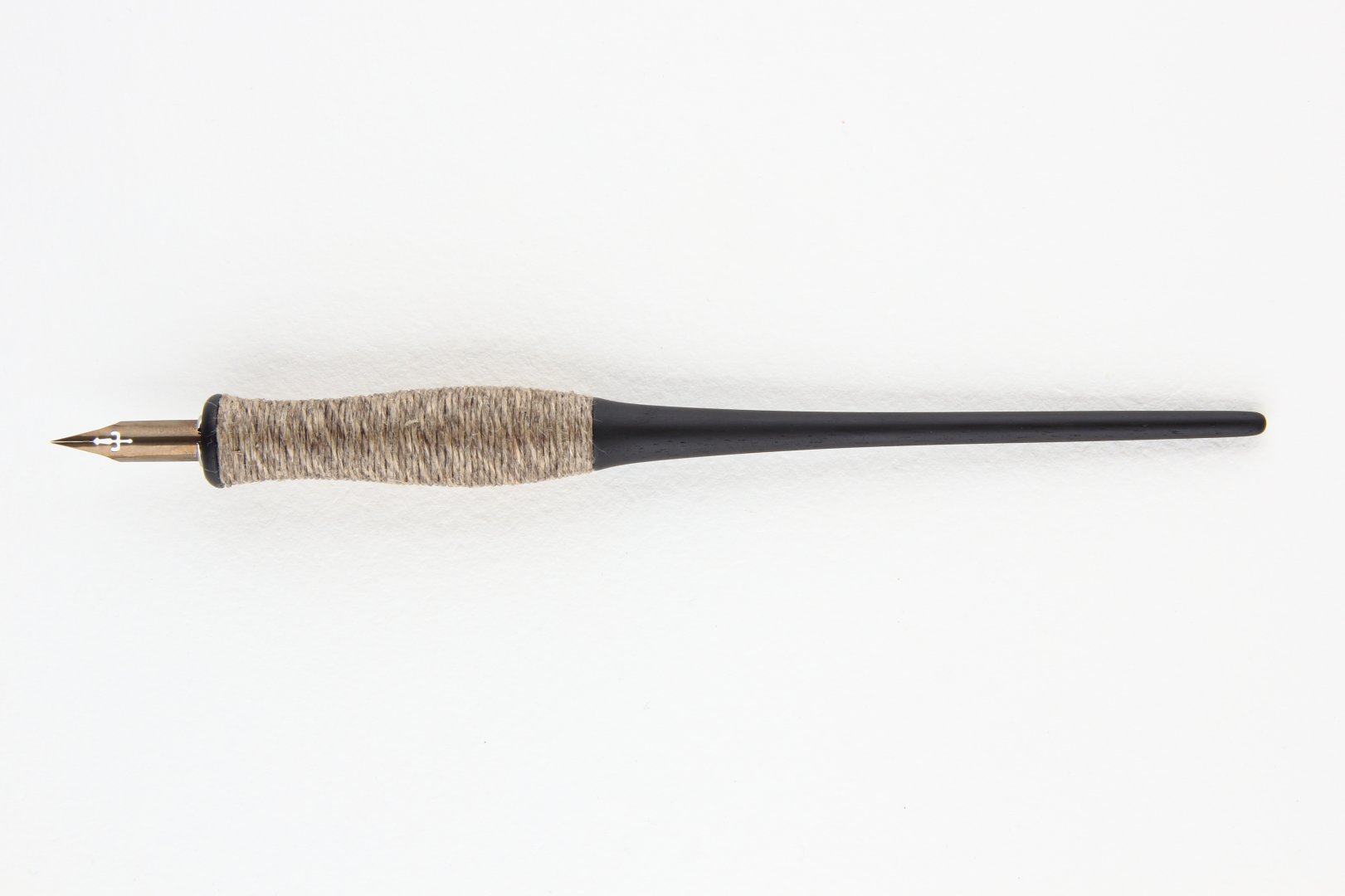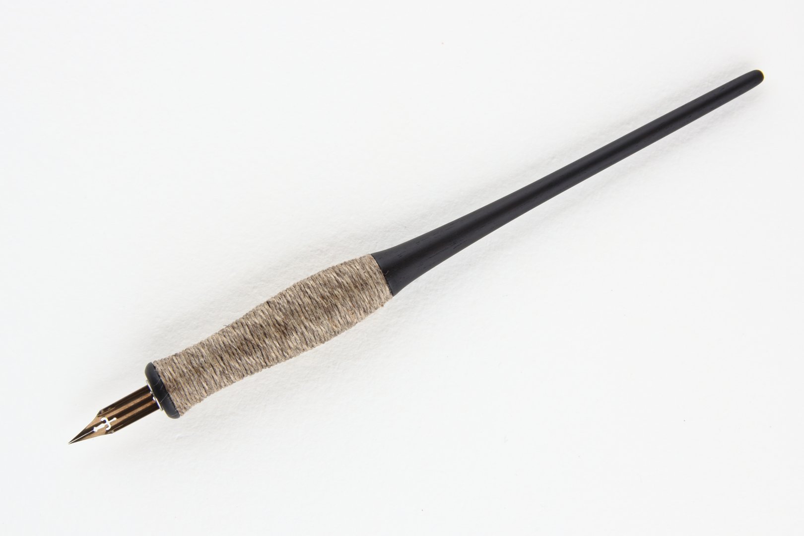 Straight pen holder made of Gabon Ebony with body wrapped with natural linen twine.