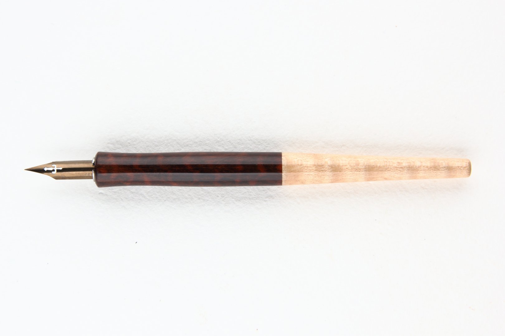 Straight pen holder made of Snakewood and Curly Sycamore Maple wood.